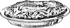 2. Press in bottom of 10" pie pan, reserving 1/2 c. of crumbs